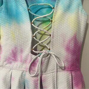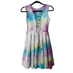 Vintage Gay Gibson Dress 1960s Tie Dye Fit & Flare Lace Up Twirl Womens XS