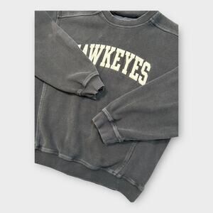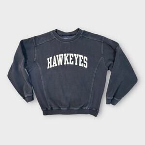 Vintage Gear for Sports Iowa Hawkeyes women's spellout script sweatshirt in black. Size small. This sweatshirt has an awesome cut to it and is made of a thick cozy waffle texture sweatshirt material. It's in very good preowned condition. There might be some very very slight fading to the black. No stains, rips, holes, or seam issues.
