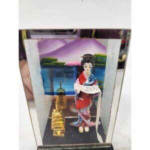 Vintage Geisha Figurine Reading Scroll In Mirrored Display Box Made In Japan