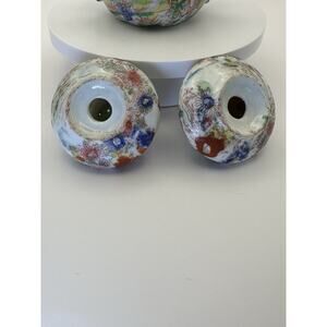 Vintage set of Kutani Geisha ware porcelain from Japan. The set consists of a sugar bowl and a set of salt and pepper shakers. They are hand painted with geisha women. The S&P have new corks, not in photos. The style is art deco based on the handles of the sugar bowl. The bowl is 3" x 4.5" x 3.25" and the salt and pepper are 2" tall. They weigh as a set 9.2 ounces. They are in excellent, vintage condition with no chips.