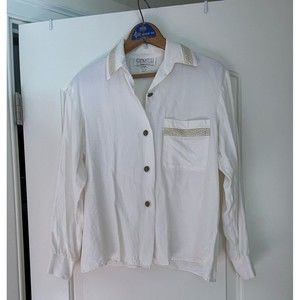 Vintage Gemilli White Button Down with Greek Key Gold Details