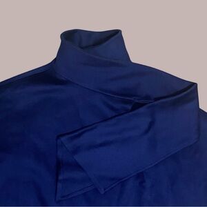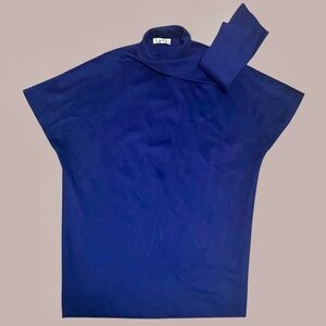 Gemini vintage coat from the 1970s in cobalt blue wool that hooks at the neck. The collar can be worn folded down or upturned, funnel-neck style and it extends to a long scarf that is thrown over one shoulder. The back has pleats that run down from the collar. This vintage wrap is like a coat, cape and wrap all rolled in to one! This is made of luxurious cobalt blue wool, is in good vintage condition and measures 44" from the nape of the neck and appx 33” across the bust. Reminiscent of 1970s origami style vintage clothing
