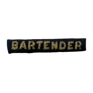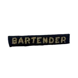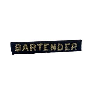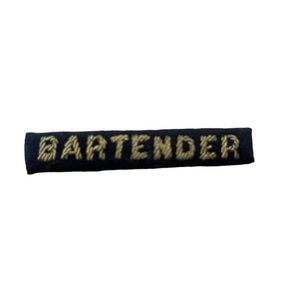 Vintage Gemsco Gold Boullion Embroidered Black Bartender Rectangular Bar Brooch