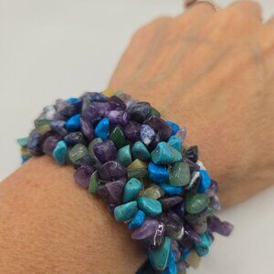 Vintage Gemstone Chip Stretch Bracelet Lot of 2 Turquoise Amethyst Multi