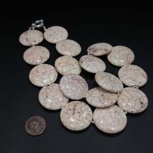 *Description: This is a unique gemstone vintage necklace from the 1980s. The artisan necklace is hand knotted on white thread using round disk quartz which is beige with pink and webs in brown. I tested the gemstone on my Presidium Gem tester and it tested in the Quartz range. Each bead is polished and in great condition. There are 17 beads total on this beautiful necklace. This would be a great addition to your vintage jewelry collection or make a great vintage gift!