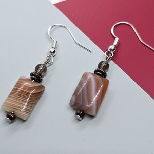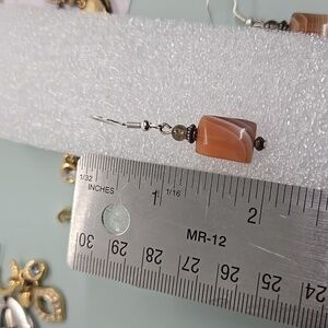 Vintage Gemstone Pink To Tan Nature Stones Earrings In Silver 925 Hooks
