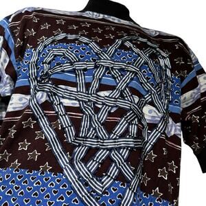 Vintage Gene Ewing BIS Shirt 80s 90s Graphic Heart Star Pattern Size M