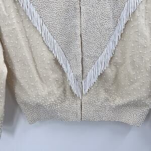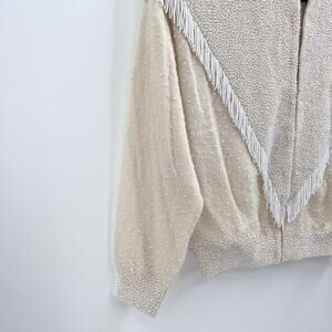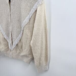 Vintage Gene Shelly's Cream Beaded Fringe Cardigan Sweater Womens Medium