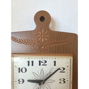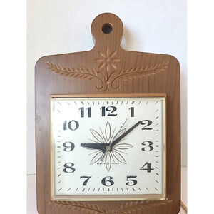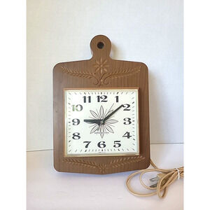 This vintage General Electric wall clock is a timeless piece that will add character to any room. With a square shape and brown plastic material, this clock features an analog display type and a quartz (plug-in electric) movement. It still works great and is perfect for collectors or those who appreciate vintage/retro style. The clock was manufactured in the 1950s and has a classic look that will blend seamlessly with any decor. It is a great addition to any collection and can be displayed in any room. Don't miss out on this unique piece of history.