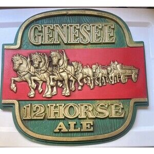 Vintage Genesee 12 Horse Ale Beer Sign Plastic: Flawed- Please Read