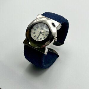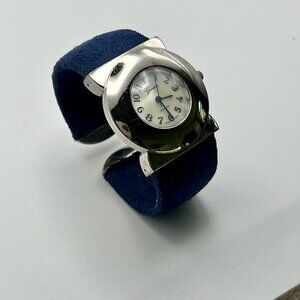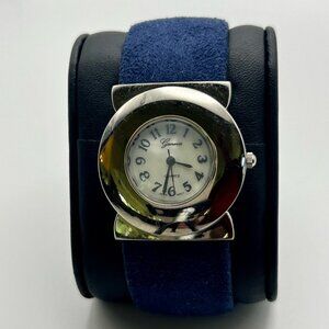 Beautiful Vintage Geneva Cuff Bracelet watch Silver and Blue Working