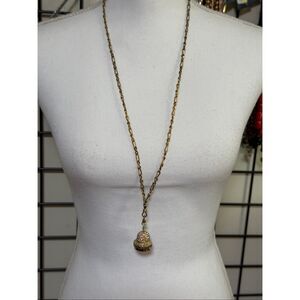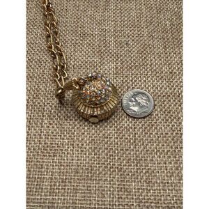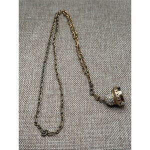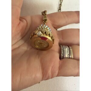 Vintage Geneva Rhinestone Ball Pendant Watch Necklace Gold Tone AB Crystal Dome