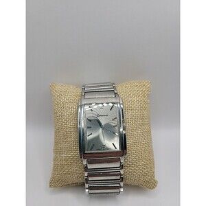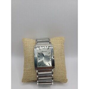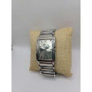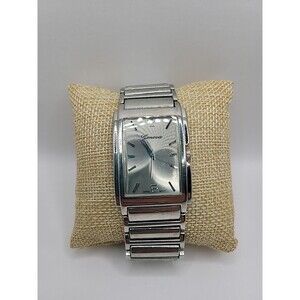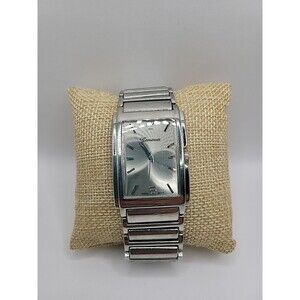 Vintage Geneva Silver Tone Rectangular Mens Quartz Wristwatch Watch Jewelry