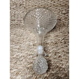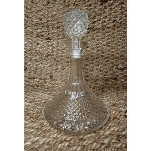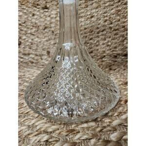 This Vintage Genie Style Crystal Clear Glass Decanter is a beautifully crafted piece with a decorative diamond pattern and a floral & garden theme. Standing at 11" tall, this elegant glass decanter exudes a designer style that is sure to add a touch of vintage charm to any home decor. Hand-blown and made with clear glass, this decanter is a stunning addition to any collection of decorative pottery and glassware.