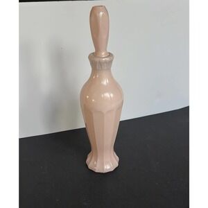 Gorgeous vintage genie-like soft pink corked bottle. Has a few places where pink coating has been scratched off. Tried to highlight in photos. Has a mild powdery scent but only noticeable if actually sniffing.