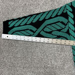 Color/Pattern: Black base with teal/green jacquard cable/rope pattern