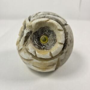 Vintage Genuine Alabaster Marble Owl Head Hand Carved Made in Italy Paperweight