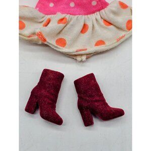 Vintage Genuine Barbie Gown And Jacket, Mini Skirt And Red Velvet Boots