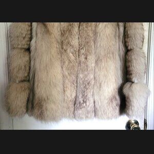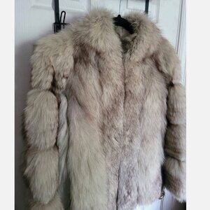 Vintage Genuine Blue Fox Fur Coat Crop Jacket Women's Large Luxury Mobwife Glam