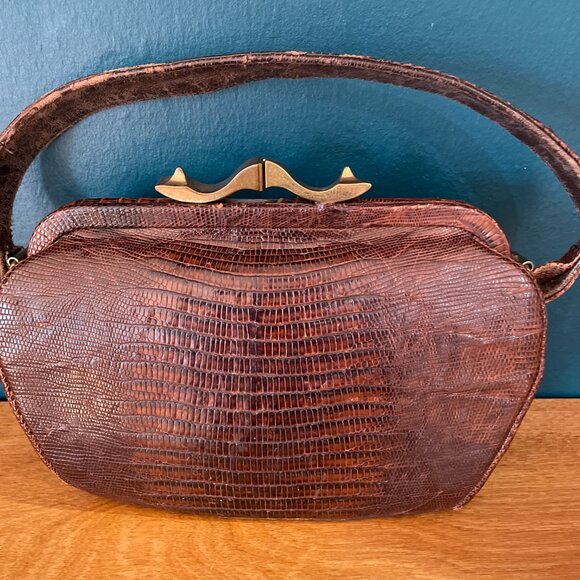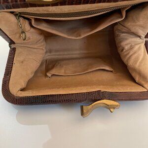 Vintage Genuine Brown Lizard Reptile Skin Leather Handbag Purse Satchel