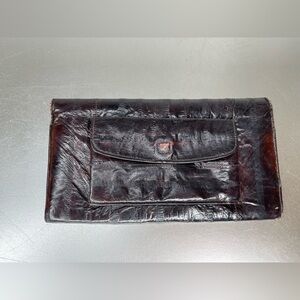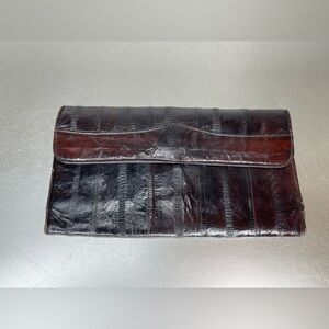 Vintage Genuine Eel Skin Brown Leather Wallet Long Bag Clutch Organizer