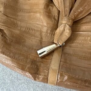 Vintage Genuine Eel Skin Shoulder Bag Purse Womens Medium Brown Korea Tassel 80s