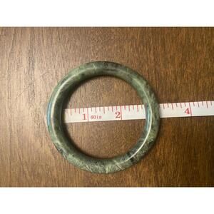 Experience elegance with this stunning handcrafted green jade bangle. Made from natural jade, this piece showcases unique veining and rich color, making it a perfect accessory for any occasion.