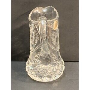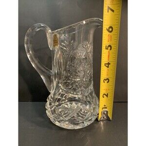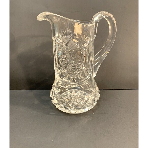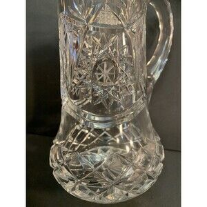 Vintage Genuine Hand Cut Lead Crystal Pitcher Vase Stars Checkerboard