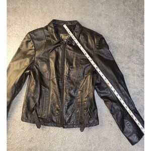 Vintage Genuine Leather Black Jacket With Zipper Closure & Collared Design, 9/10