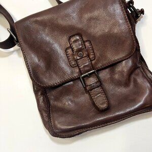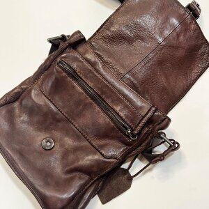Vintage Genuine Leather Brown Crossbody Bag With Adjustable Strap & Compartments