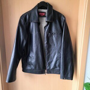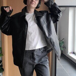 Vintage Genuine Leather Dark Brown Bomber Jacket Full Zip Sherpa Lining - Medium