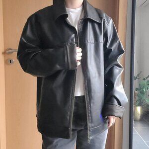 Vintage Genuine Leather Dark Brown Bomber Jacket Full Zip Sherpa Lining