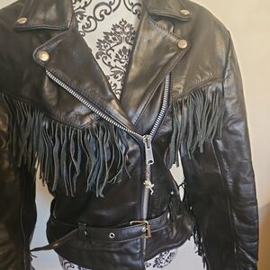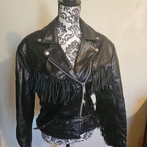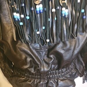 Vintage Genuine Leather Fringe Motorcycle Jacket w/ Beads Made in Mexico Size 16