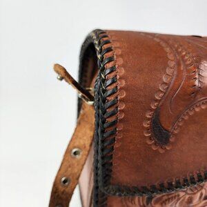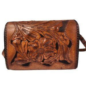 Vintage Genuine Leather Hand Tooled Brown Leather Western Boho Shoulder Purse
