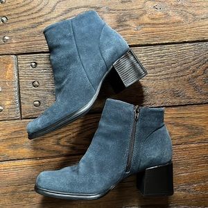 Vintage genuine blue leather suede ankle boot
