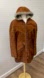 Wow, this is a vintage 70's coat that even the Marlboro man would approve. It is a really nice Cowhide Leather Jacket Tailored by Grais in a rich reddish-brown. Genuine Sueded Split Cowhide with faux fur inside as lining. Full front zip but there are two areas that I am particularly drawn to- there is a drawstring at the waist that can create a cinched look and there is fabulous patterned stitching that just screams 70's fabulous. I love it. Faux fur around the hood. Two side pockets.