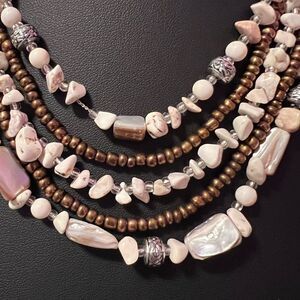 Vintage Genuine Mother Of Pearl And Howlite Silver Tone Multi Layer Necklace