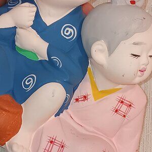 This product is a vintage genuine Hakata doll figurine handpainted in Japan. It showcases traditional Japanese culture and are handmade, adding to their authenticity and charm. Perfect for collectors of Asian cultural artifacts or those interested in Japanese traditions, the doll figurine is a unique and timeless addition to any collection. Made in Japan with precision and attention to detail, these Hakata dolls are a beautiful representation of Japanese craftsmanship and heritage.