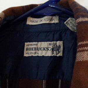 Vintage Genuine Roebucks Pearl Snap Shirt Men’s XL Long Sleeve Brown Plaid