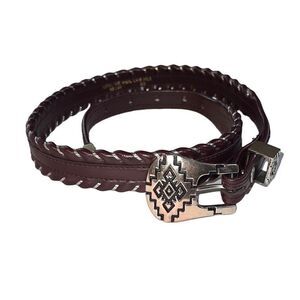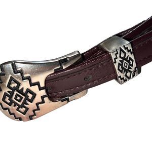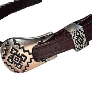 Vintage Genuine Steel Lace Belt Brown w/Silver Hardware Southwestern Belt