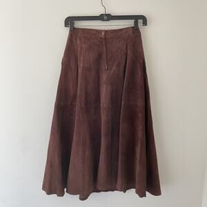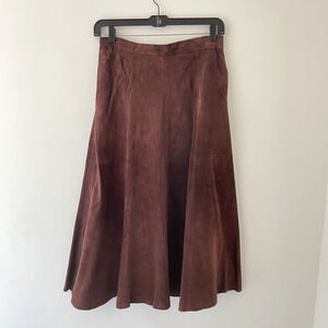 Vtg Chocolate Brown Suede Midi Skirt Size 14 Boho Cowgirl Western Romantic Y2K