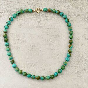 Vintage Genuine Turquoise Polished 8MM Beads 14K Gold Clasp Strand 17" Necklace