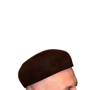 Vintage Genuine Velour Imported Fur Pillbox Hat Dark Brown Mid Century Retro