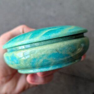 Vintage Genuine Volterra Alabaster Hand Carved Swivel Top Ducceschi Trinket Box