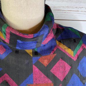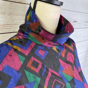 Vintage Geo Artsy MOD Mock Neck Blouse