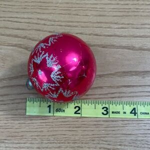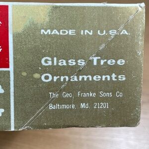 Vintage Geo Franke Glass Christmas Ornaments Gold Blue Red w Glitter Stars Set 9