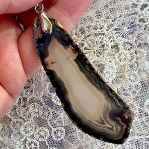 Vintage Geode Slice Pendant Necklace Black & Burgundy