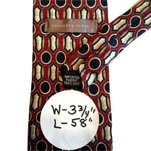 Vintage Geoffrey Beene Men's Neck Tie Black Red Gold Geometric Classic 100% Silk