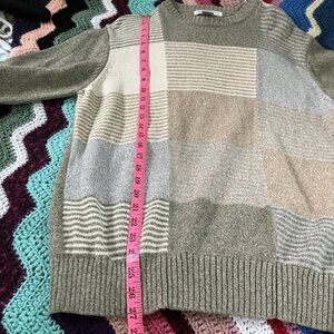 Vintage Geoffrey Beene Sweater Mens M Cotton Patchwork Grandpa Neutral Cabin Cozy 90s Oversized