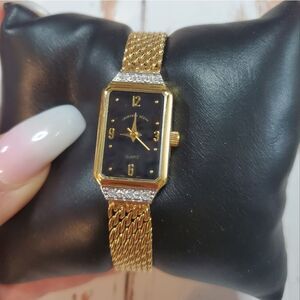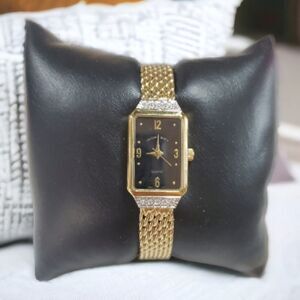 This stunning vintage watch is one of the few pieces from my personal collection. Dates back to the early-mid 90's. Studded with a row of sparkling CZs on the top and bottom of the watch face, nothing says class like this beautiful piece! This watch was never worn and is in excellent- like new condition. No box. Requires a new battery.